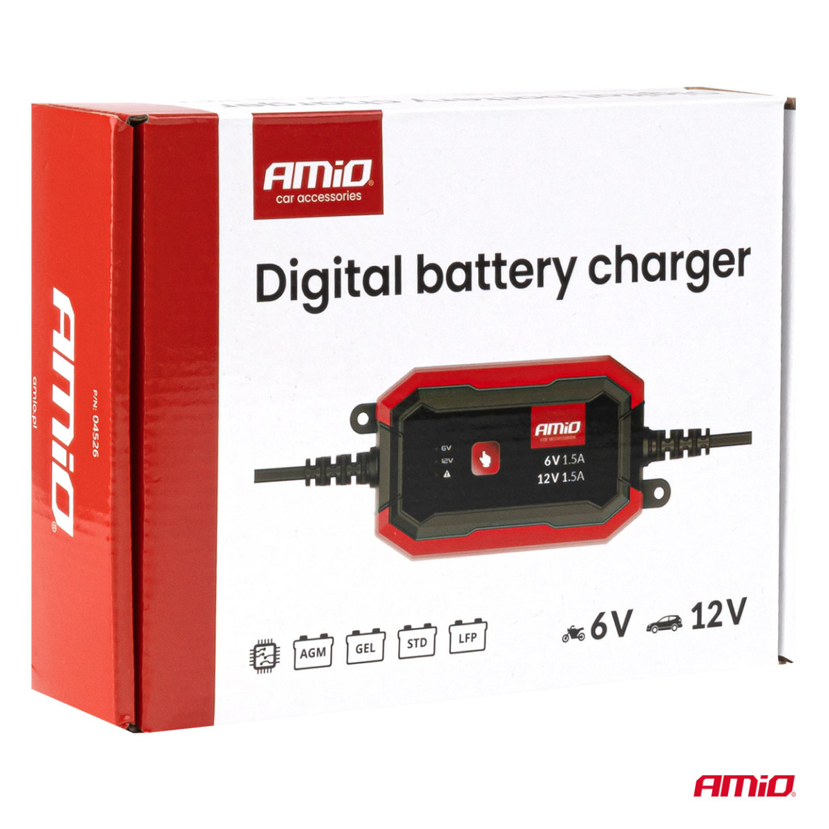 Digitaalinen akkulaturi AMiO on moderni ja luotettava laite AGM-, GEL-, STD- ja LiFePo4 (LFP) -akkujen lataamiseen. Tarkan digitaalisen ohjauksen ansiosta se varmistaa turvallisen ja tehokkaan latauksen 6 V:n tai 12 V:n akuille. Optimaalinen valinta autojen, moottoripyörien, veneiden tai muiden ammattilaitteiden pienikapasiteettisille akuille.