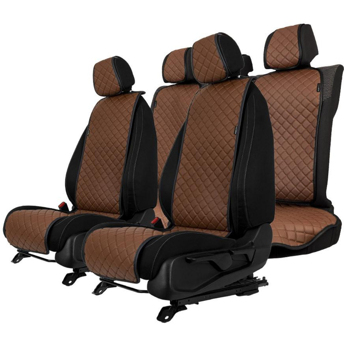 EVAtech ECO Basic -istuinsuojat, 3 kpl - ruskea / mustat reunat / ruskeat ompeleet
