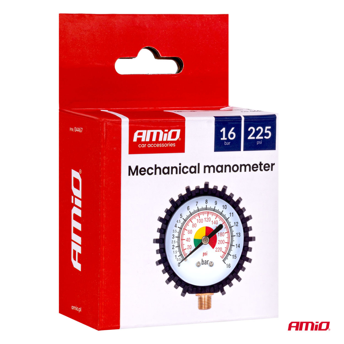 Mekaaninen painemittari kumisuojuksella 16 bar G 1/4″, AMIO-04467