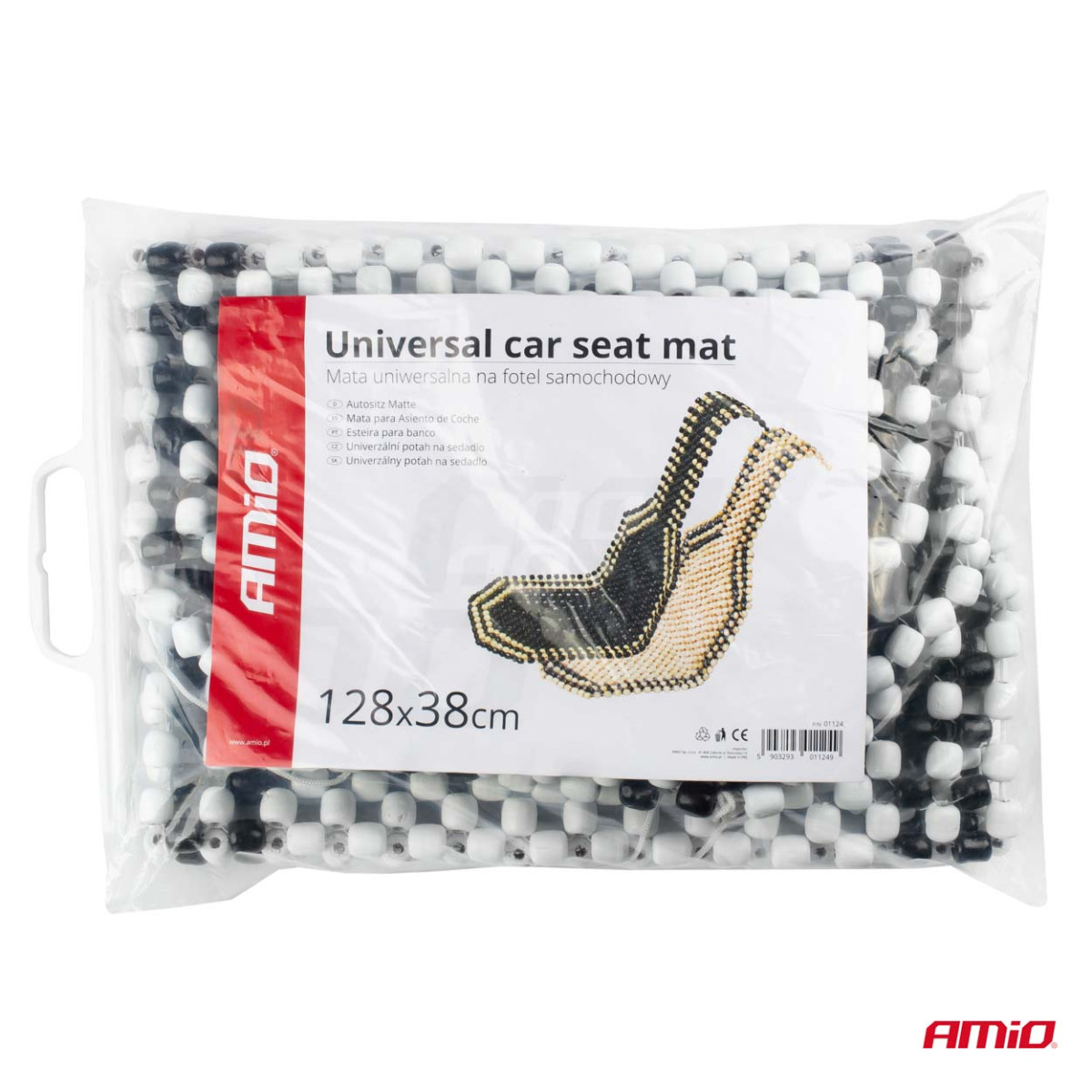 Puinen helmimatto auton istuimeen 128 x 38 cm - musta / vaalea kerma