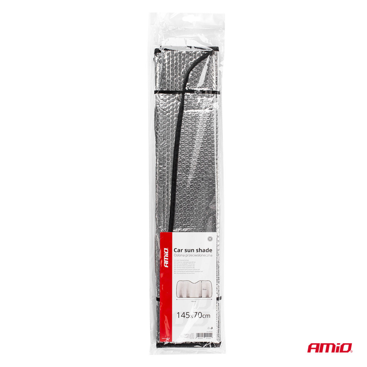 Tuulilasin suoja 145x70 cm, hopea, PE-kupla AMIO-01532
