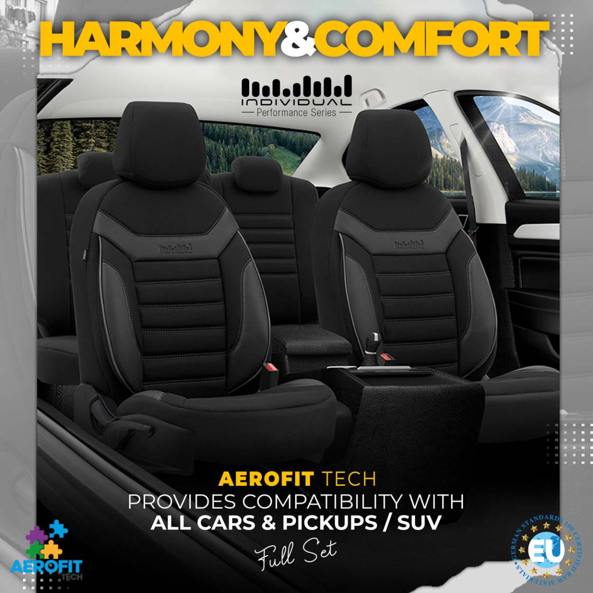Vakiokokoisissa suojuksissa on sertifioitu AIRBAG- sauma, joten ne sopivat autoihin, joissa on molemmat sivuturvatyynyt istuimissa, sekä vakioistuimiin. Erikoisen kierrerakenteensa ansiosta suojukset ympäröivät istuimet kokonaan häiritsemättä turvatyynyjen toimintaa.