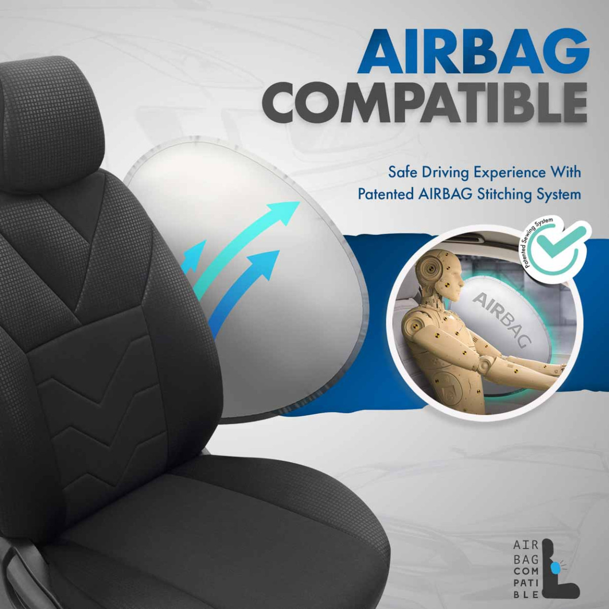 Vakiokokoisissa suojuksissa on sertifioitu AIRBAG- kierre, joten ne sopivat autoihin, joissa on molemmat sivuturvatyynyt istuimissa, sekä vakioistuimiin. Erikoisen kierrerakenteen ansiosta suojukset ympäröivät istuimet kokonaan häiritsemättä turvatyynyjen toimintaa.
